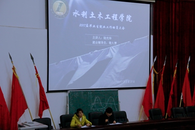 大会开始,敬久赟老师宣读了《水土学院2017届毕业生就业指导实施方案》,对近期工作做了安排、提了要求、强调了注意事项。陆光华副院长从“明确指导思想、引起高度重视;明确工作目标、统一思想认识;把握就业形势、掌握就业政策;坚定理想信念,实现人生梦想;转变思想观念,积极努力就业;认真把握自我,站好最后岗位”等六个方面作了深入浅出、语重心长的动员讲话。她在讲话中回顾总结了往年就业工作,深入分析了当前就业形势,深刻解读了就业政策,并向大家提出了殷切希望和明确要求。她特别强调指出,每一位毕业生要对自己的就业择业和创业工作引起高度重视,积极转变就业择业观念,树立正确的就业观和择业观,把握就业机会、掌握就业政策,正确定位自己、把握自己,努力以多项式多渠道就业,并祝福全体毕业生顺利毕业、顺利就业,奔向社会、报效祖国!