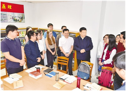 5月2日,中共中央总书记、国家主席、中央军委主席习近平来到北京大学考察。这是习近平在北京大学马克思主义学院,与正在就“解读新时代”进行座谈交流的中外学生亲切交谈。 新华社记者 李 涛摄  5月2日,中共中央总书记、国家主席、中央军委主席习近平来到北京大学考察。这是习近平同北京大学师生座谈并发表重要讲话。 新华社记者 李 涛摄