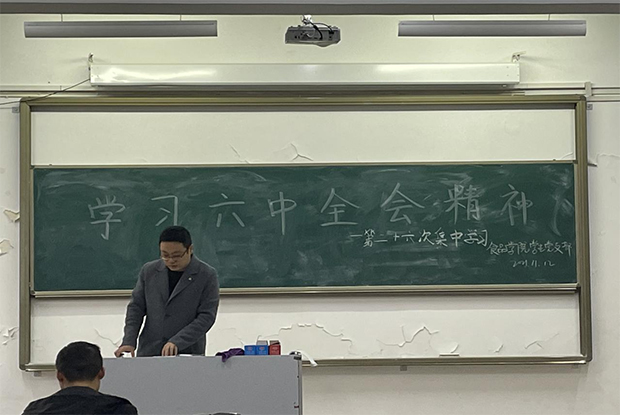 学习中,马老师指出党的百年奋斗历史重大成就和历史经验是一代代革命前辈用鲜血和生命换来的,富含宝贵精神、价值无限。我们要在在数往知来中砥砺激情斗志,牢记使命;在经验教训中不断校正和树立正确的奋斗目标。作为一名新时代大学生党员,我们要认真学习贯彻十九届六中全会精神,坚持做到学思践悟、学通弄懂、学以致用,真正用先进思想武装头脑,把全会精神切实转化成生活和学习的动力,切实把初心植根于内心深处,把使命牢记在胸前,用笃行勇毅的姿态,继续为人民谋幸福,为国家建设贡献自己的力量。