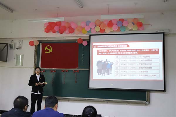 最后,学工处副处长熊富强老师作了精彩点评,他教育引导同学们首先要从马列经典著作中体悟真理,做任何事都要坚持实事求是;第二要明白人民政权的建立与今天的幸福来之不易,要珍惜现在的幸福生活;第三要增强“四个意识”、坚定“四个自信”、做到“两个维护”,为实现中华民族伟大复兴的中国梦而不懈努力奋斗!