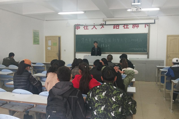 学生以班级为单位,召开“学习习近平在2018年全国全国教育大会上讲话精神”主题班会。班会从“培养什么人,是教育的首要问题”、“育才造士,为国之本”、”国无德不兴,人无德不立”、“才为德之资,德为才之帅”、“实现立德树人,离不开教育体系的制度支撑”、”教育大计,教师为本”等方面传达了习近平在全国教育大会上的讲话精神。并深入交流了学习体会,大家纷纷表示,习近平总书记的重要讲话立意高远、内容丰富、思想深邃,为新时代教育事业发展指明了方向、提供了根本遵循。作为当代大学生要树立共产主义远大理想和中国特色社会主义共同理想,增强“四个自信”,肩负时代重任,努力学习专业技能,提高综合素质,积极响应党和人民号召,将来在党和人民最需要的地方去,谱写不愧于自己,不愧于时代,不愧于祖国的优美华章。