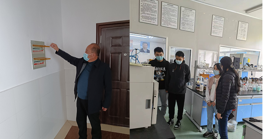 食品科学学院兰小中副院长与生物技术教研室副主任禄亚洲到科技园区开展安全隐患排查,重点检查了藏药资源圃、食品加工车间防火情况、实验环境安全情况、实验人员防护情况、实验材料的规范摆放情况。