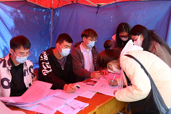 学生错峰返报道期间,我院领导、辅导员、学生志愿者按计划,分批次在我院报到点热情的迎接同学们的归来,报道期间未出现任何突发情况。在同学们身体健康的前提下,我院党委副书记索朗才旺和辅导员马少飞老师于3月13日下午16时在报道处组织召开了新学期党团学干部收心会。