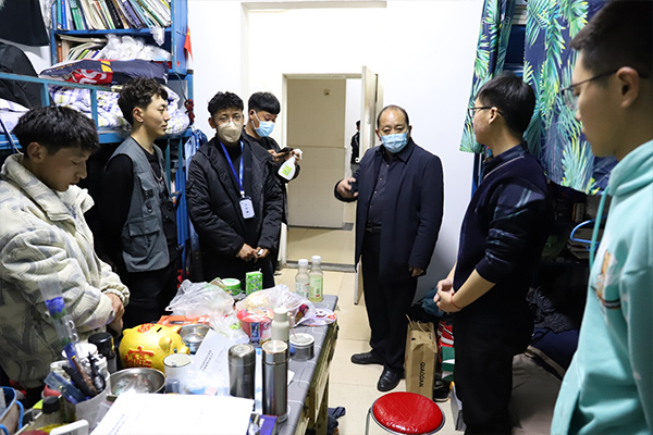 3月13日晚上21时,我院领导、各年级班主任老师们与党团学干部,深入学生宿舍了解关心已返校学生的身体、心理状况。叮嘱同学们一定要积极配合疫情防控工作,做好防护措施,同时号召同学们要在这充满机遇又富于挑战的新学期,始终坚守初心,坚持勤奋刻苦学习,练就过硬本领。