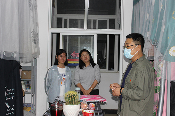 新学期如约而至,新学期,新气象。在常态化疫情防控下,为确保我院师生身体健康,我院学子严格按照分批、错峰安排有序返校。为了解学生到校后的身心健康情况,检查宿舍卫生以及排查安全隐患,强调防疫工作要求和开学等相关事宜,8月8日晚九时,我院党委副书记索朗才旺,学生科科长马少飞,辅导员巩雪梅以及部分班主任共同牵头,带领我院团学各部门代表组成的联合查寝团深入宿舍楼对我院所属学生寝室进行了一系列检查工作。