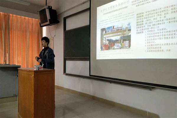 巩老师先是分别介绍了大学生志愿服务西部计划、选聘高校毕业生到村任职(大学生村官)、“三支一扶”计划、农村义务教育阶段学校教师特设岗位计划(特岗教师)等中央有关部门基层就业项目,在项目性质、报名时间、报名流程、服务年限、优惠政策等方面做了详细的介绍,并结合自身志愿服务经历,鼓励在座应届毕业生时刻关注、积极报名,到边远地方去、到基层去、到祖国需要的地方去,奉献自己的光和热,更好的服务群众,也不失为一种人生历练。