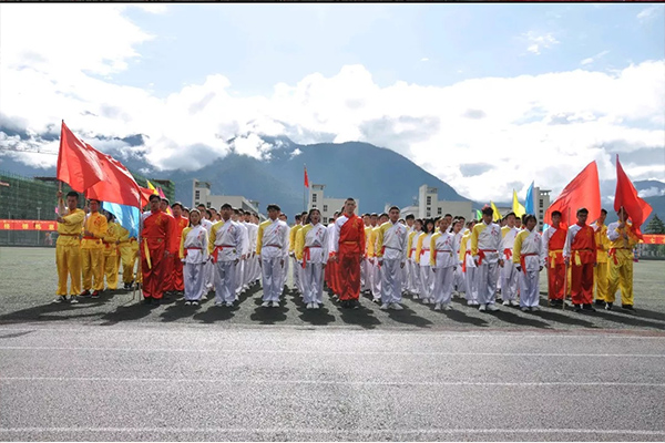 西藏农牧学院第三十八届田径运动会于2019年5月9日在体育场正式拉开帷幕。上午9点,全校师生参加了运动会开幕式。在激昂的乐声中,校旗方阵、鲜花方阵、各院方阵依次通过主席台,在各院迎风飘扬的院旗的引领下,运动员们着装整齐,精神抖擞,喊着嘹亮的口号,迈着整齐的步伐,展示了西藏农牧学院学子们积极向上的精神风貌。