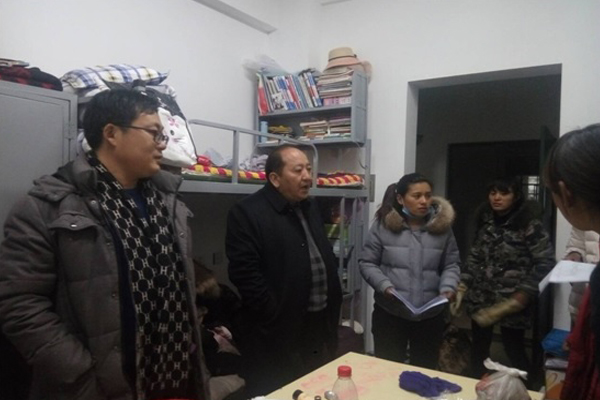 为了解学生开学返校情况、消除学生寝室安全隐患、了解学生思想动态,加强师生沟通交流。食品科学学院于2017年3月5日晚组织我院书记洛桑次旦、院长肖振红、党委副书记索朗才旺、学生科科长马少飞老师、团总支书记次仁措老师、辅导员高昕老师对我院男、女生宿舍进行慰问检查。