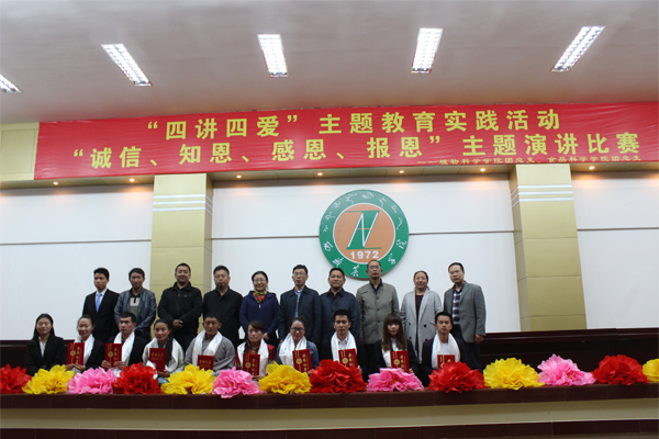 为进一步开展“四讲四爱”主题教育活动,积极营造以诚信为荣的校园文化园氛围,西藏农牧学院于2017年6月5日19时在行政楼一楼会议室举办“诚信、感恩、知恩、报恩”主题演讲比赛,本次演讲比赛由植物科学学院和食品科学学院共同承办,校党委宣传部巴桑次仁部长 、学生工作处米玛顿珠处长、各二级学院党委书记或副书记及师生代表参加了本次活动。