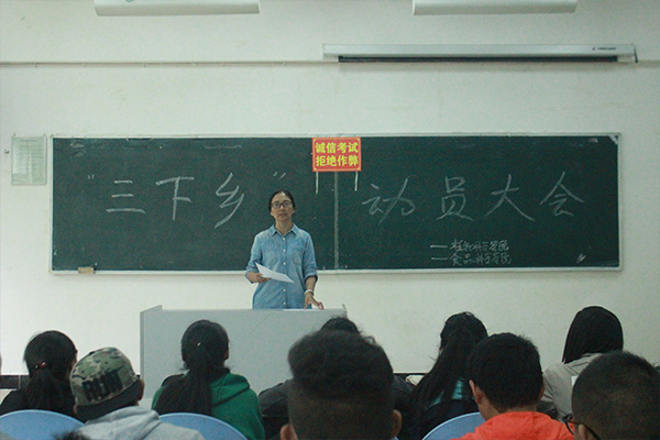 在两位书记的讲话中充分肯定了此次暑期“三下乡”社会实践活动的各项准备工作。阐述了开展暑期“三下乡”社会实践活动对加强大学生思想政治教育、服务社会经济发展、促进大学生成长成才等方面的重要意义,并从“突出主题、明确目的、积极参与、面向基层、务求实效、精心组织、团结协作、尊重村民、确保安全、树立形象、加强宣传、收集材料、全面总结”等提出了明确的要求和殷切的希望。