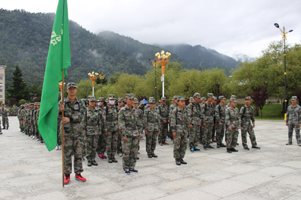 上午十时,军训营整装出发。大家有序地排成两列队伍,迈着愉悦的步伐踏上拉练之路。今天的林芝,下着蒙蒙的细雨,给慢慢长路带来了一丝丝清凉。大家穿行于山间,脚下是泥泞的小路,路旁开着无名的小花,透过薄雾能发现牛儿栖息在草地,雨雾中的远山呈现出墨绿。虽然拉练是辛苦的,但一路走来我们却收获了很多意想不到的惊喜与快乐。