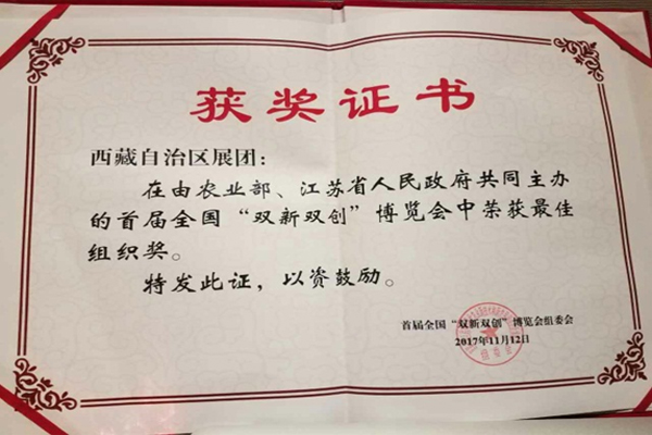 受学校委派,2017年11月5日,由科研处刘翠花处长带领下,食品学院的钟政昌、张国强老师两人带着我校部分科技成果加入了西藏代表团赴苏州参加了“互联网+”现代农业新技术和新农民创业创新博览会。我校代表到苏州后,立即投入宣传材料的设计与制作、展品布置等紧张的准备工作。在展览期间,我校代表严格遵从西藏代表团统一部署安排,严守岗位,认真介绍我校的科研成果,热情接待每位来访者。展示了大方得体的农院人形象。2017年11月12日,博览会结束,西藏代表团以良好的精神风貌获得了本次博览会的“最佳组织奖”。