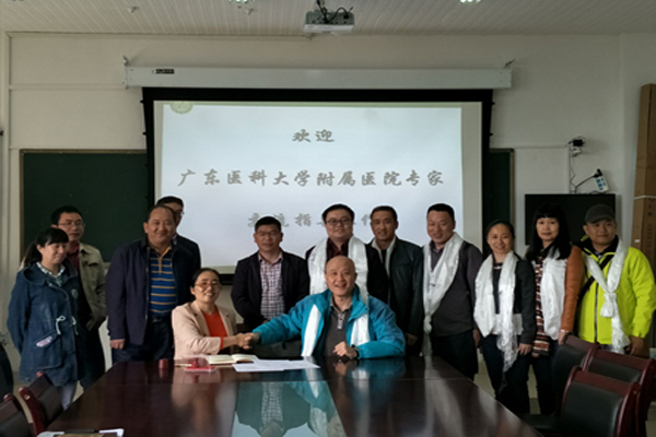 2017年6月21日,广东医科大学附属医院党委书记、院长陈灿率7名专家到我院交流学习,并于我院签订了青藏高原特色生物医药资源研究与开发合作协议。我院党委书记洛桑次旦,院长肖振红、副院长兰小中,以及学院相关教师参与了座谈交流和签约仪式。