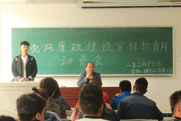 为贯彻落实党的十八届六中全会和自治区第九次党代会精神,加强廉政文化宣传,推动廉政文化进校园活动。根据《西藏农牧学院“党风廉政建设宣传教育月”实施方案》要求和食品科学学院党委安排部署,学院于9月16日组织学生党员、团学干部召开了“党风廉政宣传教育月”动员会,食品学院党委书记洛桑次旦出席动员会,并作动员讲话。