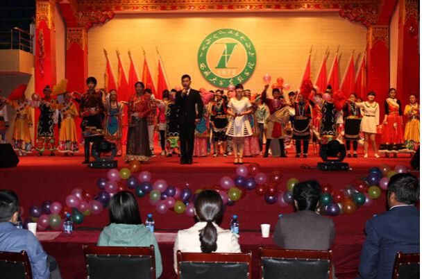 晚会在欢快的开场舞《丰收的喜悦》中拉开了帷幕,一曲独唱《祝福》唱出了广大师生员工对全体毕业生的期望与祝福;一幕舞台剧《再见青春》展现了毕业生大学四年学习生活的点点滴滴。在一首《一路顺风》的乐曲中,在校学生代表向全体毕业生献上了洁白的哈达,祝愿他们在今后的征途上一路平安,创造出新的业绩,谱写青春壮丽的乐章。