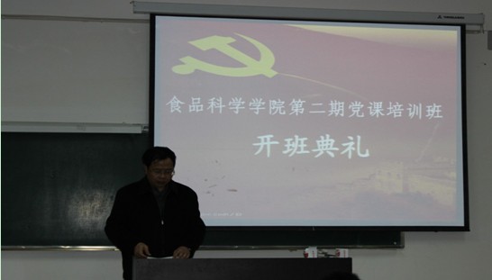 2013年10月26日上午9:30,食品科学学院党总支在3101教室举行了2013年第二期学生入党积极分子培训班开班仪式,我院52名入党积极分子参加了本次培训班开班仪式。我院党总支副书记殷福军主持了开班仪式并发表了动员讲话。开班仪式结束后,殷福军副书记组织全体入党积极分子认真学习了习近平总书记关于“认真学习党章,严格遵守党章”的重要讲话。
