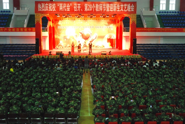 2012年9月8日晚7时,学校体育馆内歌舞飞扬、激情四射,庆祝学校“两代会”胜利召开、第28个教师节暨迎新生文艺晚会在这里隆重举行。食品科学学院师生员工参加并观看了此次演出。