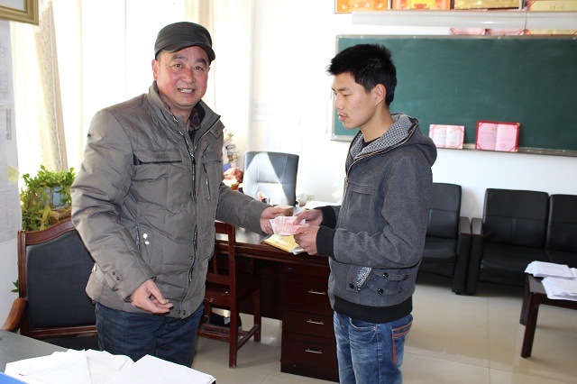 贾小龙同志已经连续两年资助了该生,用他的爱心深深温暖着我院贫困生王鹏同学,王鹏同学表示:一定会以此为动力,好好学习科学文化知识,争取在学业上取得不断的进步!