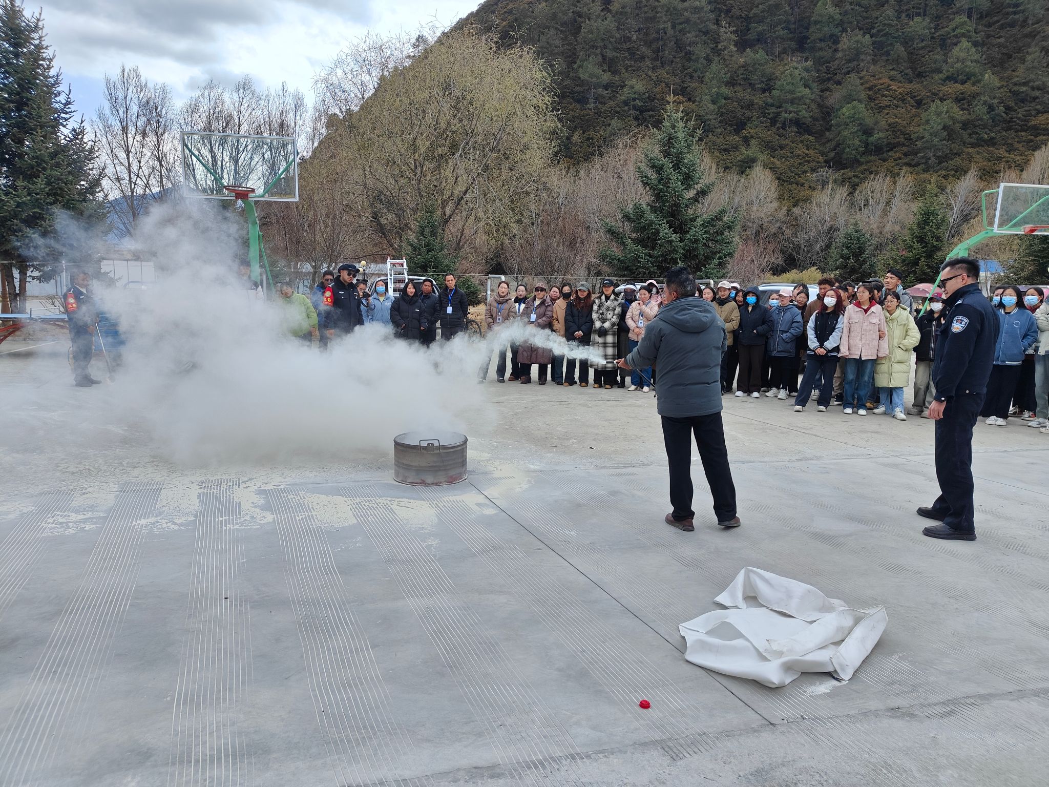 随后校保卫处副处长贡嘎对演习作出总结并提醒同学们在外住酒店时要留意楼梯以及微型消防站的安全指示牌位置。例举了多起学校起火的案例,警示大家不要在宿舍使用大功率电器。