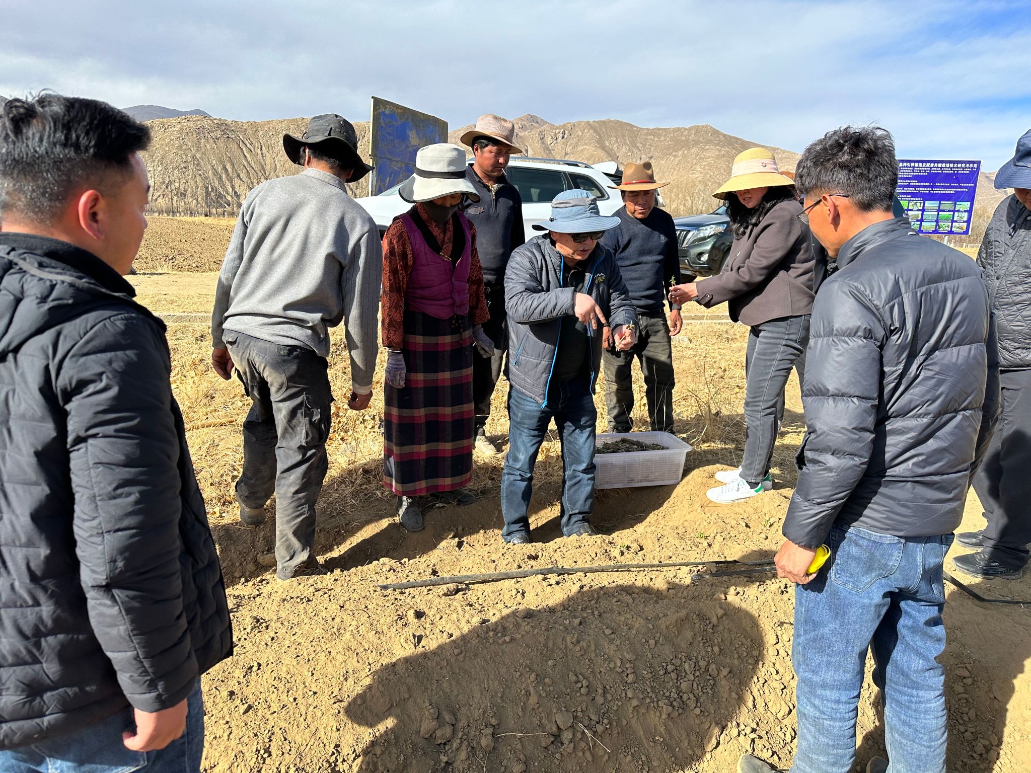 为推进中药材百合种植的规范化与标准化,实现中药赋能乡村振兴,兰小中教授于3月24日至26日亲赴南木林县艾玛乡卷丹百合种植示范基地,对试种工作进行了实地指导。兰小中教授一直心系我区藏药材发展事业,致力于中(藏)药材乡村振兴。24日下午,在日喀则市国家农业科技园区管委会花霞主任等人员的陪同下,直接到达艾玛乡的种植地现场并开展调研,了解了种植过程中的土壤管理、水肥控制、病虫害防治等方面的工作。他强调,中药材种植是一项系统工程,需要科学规划、精细管理,确保百合的品质和产量。