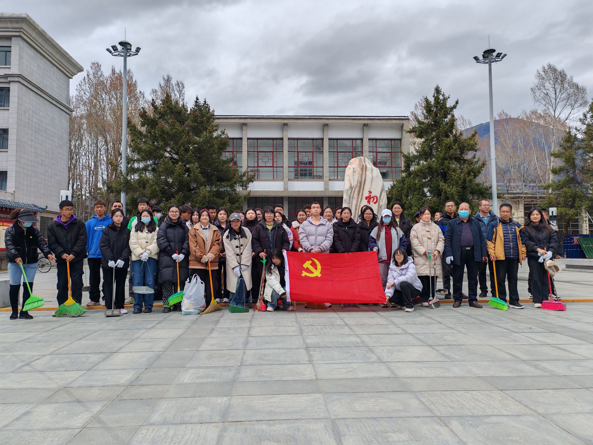 3月29日下午15时许,师生党员带上扫帚、撮箕、垃圾袋等清洁用具到初心碑处集合,在合影拍照后,由食品学院党委洛桑次旦书记和肖振红院长带队分两个组队从两个方向对第四教学楼周边、筹建广场周边、图书馆周边的绿化带、道路进行打扫。大家情绪高涨、积极主动认真捡拾白色垃圾、烟头,清理枯枝败叶,不放每一个角落。