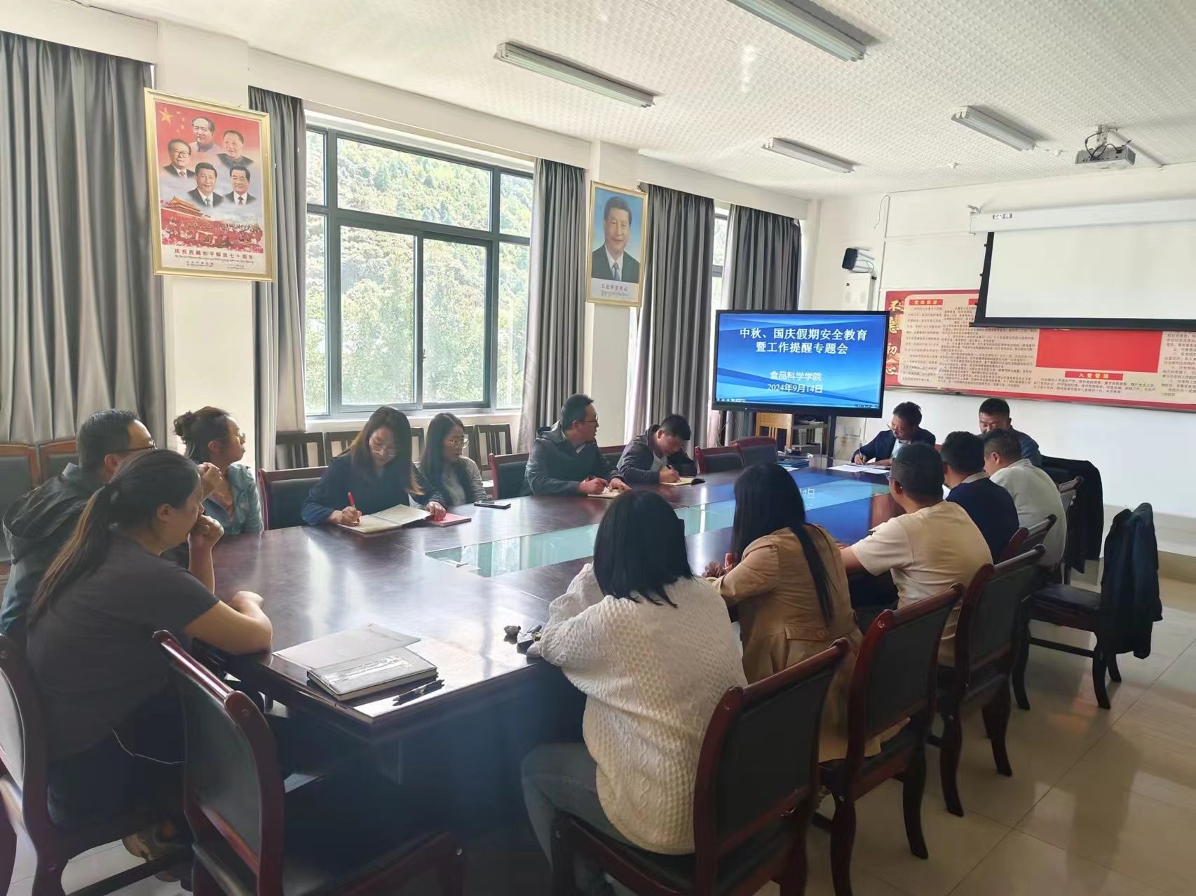 根据学校纪委9月14日印发的《工作提示》和学校《关于2024年中秋节,国庆节放假安排的通知》要求,9月14日,食品科学学院召开中秋、国庆假期安全教育暨工作提醒专题会,会议由学院党委副书记索朗才旺主持,全体在校无课教职工参加了此次会议。