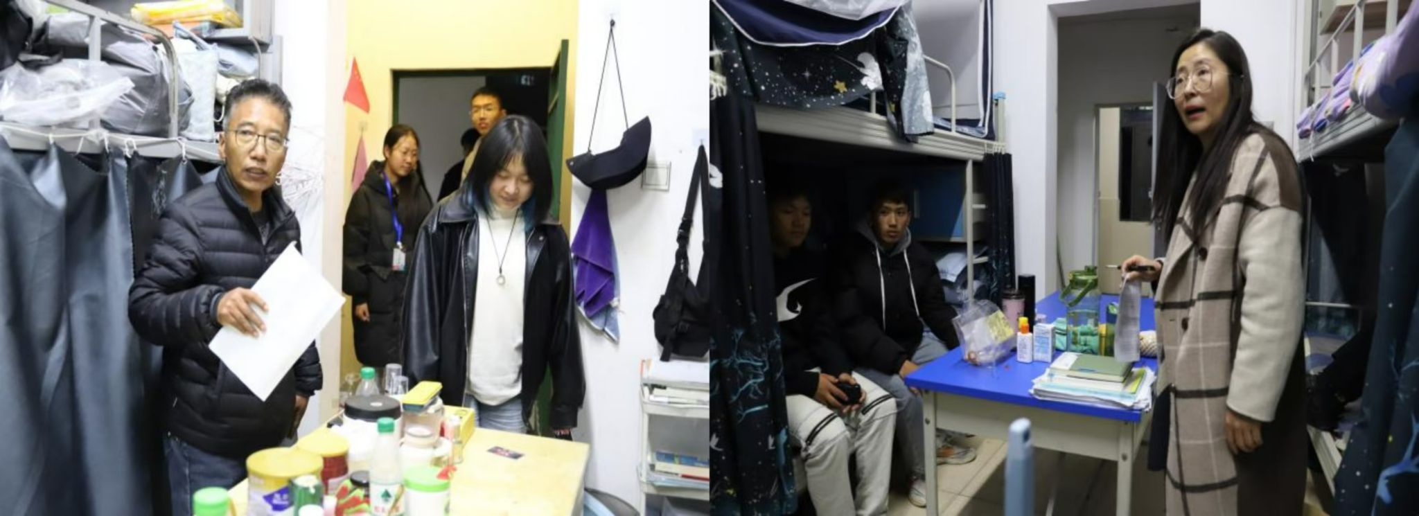 在检查过程中,旦巴就抽烟、夜不归宿和悬挂疑似宗教信仰相关物品等问题与同学们进行了交流,指出这些问题的危害,希望同学们有则改之无则加勉;同时对检查中发现的违规寝室进行批评并勒令整改,对优秀宿舍进行表扬与鼓励。