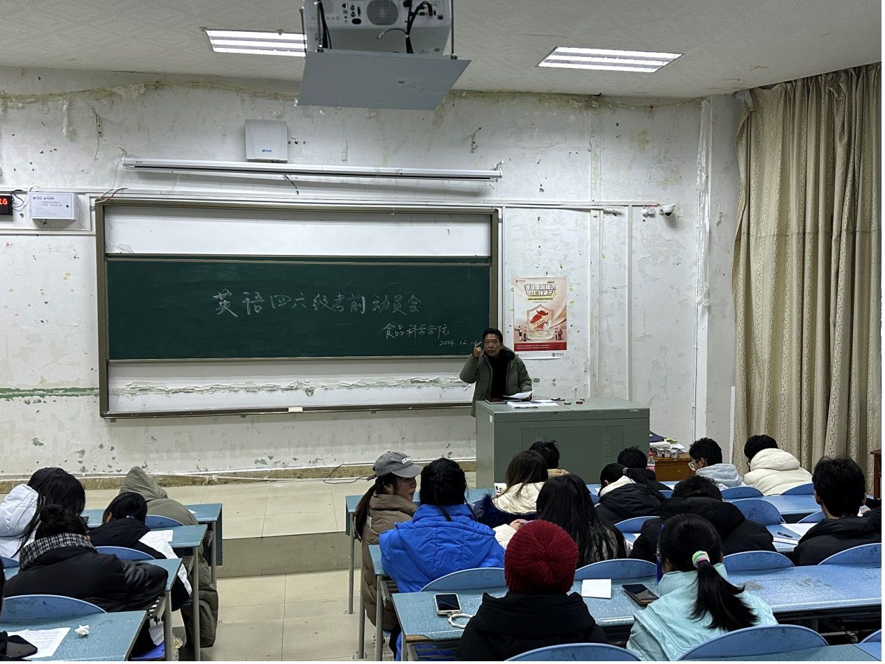 12月13日18:30,食品科学学院在1107教室开展全国大学生英语四、六级考试考前动员会。会议由教学科刘江老师主持,食品科学学院副院长旦巴、全体考试学生参加此次会议。