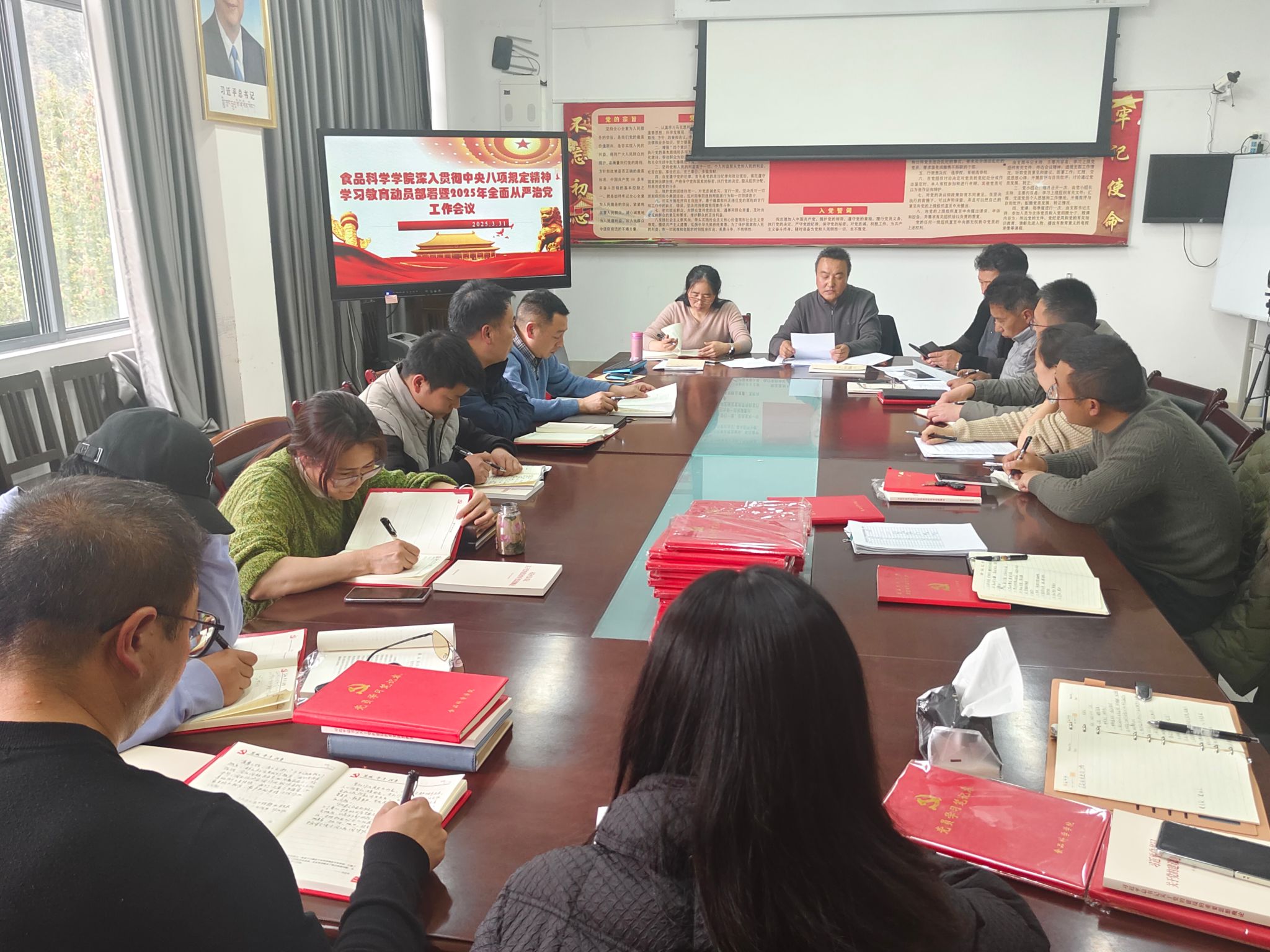 根据学校深入贯彻中央八项规定精神学习教育的统一部署和要求,3月31日,食品科学学院召开深入贯彻中央八项规定精神学习教育动员部署暨2025年全面从严治党工作会,会议由学院党委书记旦巴次仁主持,党委班子成员、全体教师党员和学生党员代表参加会议。