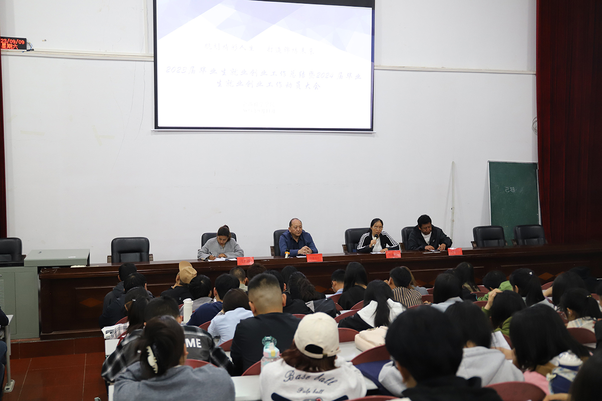 会上,食品学院党委书记洛桑次旦简要总结2023届毕业生就业创业工作情况,强调当前就业形势依然严峻,全体就业工作者进一步提高政治站位,认真落实党中央、国务院和自治区党委、政府和学校关于促进高校毕业生就业的决策部署,围绕时间节点,采取有力举措,把工作想在前、做在前,突出重点关键,抓好区内、区外两个市场,征集更多就业岗位,组织开展好校园专场招聘会、就业见习等活动,全力以赴促进我院毕业生更充分更高质量就业。希望2024届毕业生要认清就业形势,坚定就业信心,明确就业目标,摆正就业心态,调整就业预期,做好就业规划,做到就业目标务实化和理性化,不能盲目从众。要积极行动,做到不依赖,不等待,想尽办法,主动出击,先就业再择业。要严格要求自己,保持良好的学习生活状态,珍惜学习时光,不断拓展自身能力素质。
