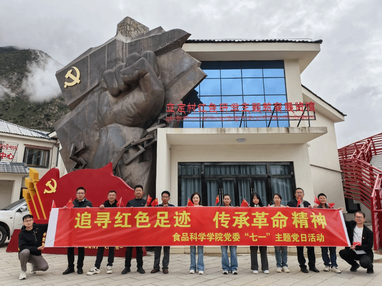 为庆祝中国共产党成立104周年及喜迎西藏自治区成立60周年,深入学习贯彻习近平新时代中国特色社会主义思想,6月20日上午,食品科学学院教工党支部组织党员赴林芝镇立定村红色教育基地开展以“追寻红色足迹,传承革命精神”为主题的“七一”建党主题党日活动。