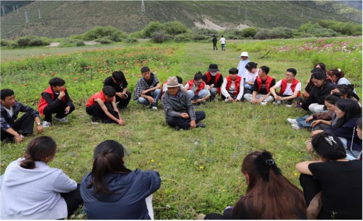村中老党员结合自身的经历给同学们讲述西藏日新月异的发展,幸福生活离不开中国共产党的领导史。