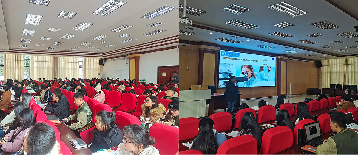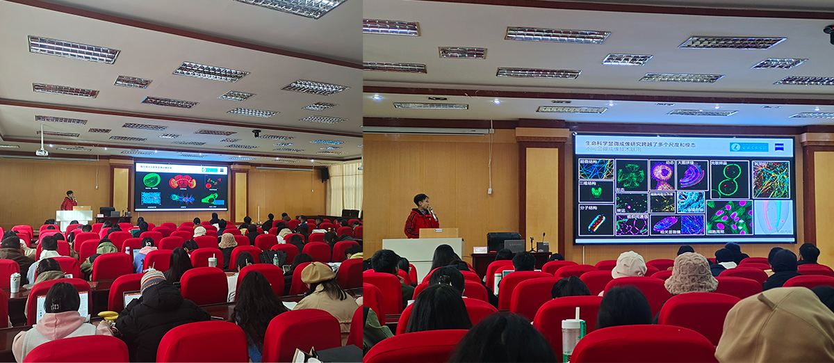 显微成像技术在生物学领域应用广泛,能够帮助科学家研究动植物、微生物等形态以及细胞和生物分子的结构和定位等等,是生命科学研究中非常重要的工具。为了更好地掌握这种方法,11月14日上午,西藏中(藏)药资源中心联合卡尔蔡司面向校内外师生成功举办高端显微成像解决方案研讨会。本次讲座邀请到了蔡司资深应用工程师梅兰老师和王莹老师作为主讲嘉宾。食品科学学院兰小中教授出席会议,我校近200名师生参加了本次讲座。