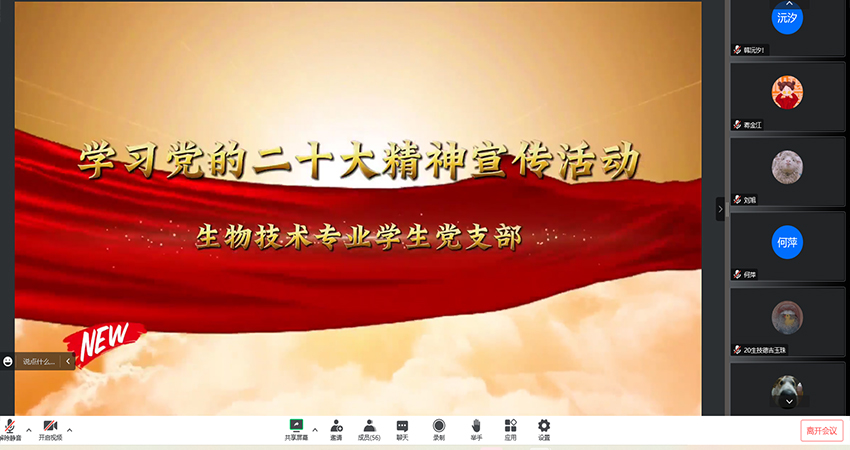 党的二十大是一次承前启后、继往开来的大会,必将以“高举旗帜、凝聚力量、团结奋进”,来开创党和国家事业发展新局面而载入史册,为了深入学习领会党的二十大的重大意义,切实把党的二十大精神学习好、宣传好、贯彻好、落实好,我支部于2022年11月7日下午6点组织开展“学习二十大、奋进新征程”学习宣传活动,此次活动以线上形式开展,全体党员、入党积极分子共50余人参加本次学习。