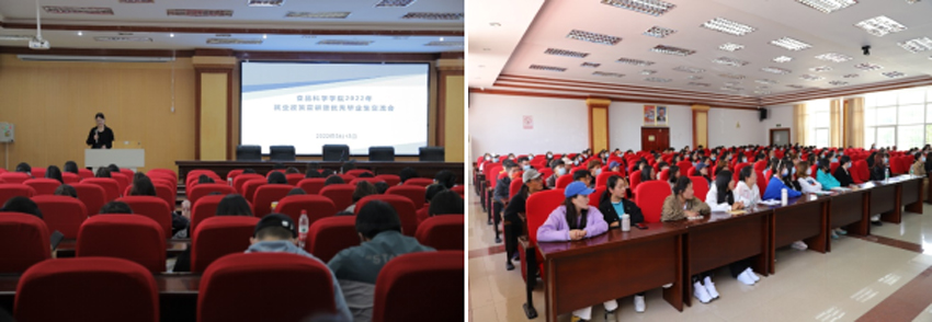 为贯彻落实党中央、国务院“稳就业”“保就业”决策部署,抢抓毕业生离校前的求职关键期,全力促进我校毕业生顺利就业、尽早就业,根据教育部、自治区教育厅《关于举办2022届高校毕业生就业促进周 开展“百日冲剌”系统活动的通知》要求,为推动我院毕业生就业创业工作顺利有效开展,根据我院就业促进周工作方案安排,我院于5月13日下午15:30在学校研究生苑会议室召开2022年度就业政策宣讲暨优秀毕业生交流会,我院党委副书记索朗才旺、就业辅导员巩雪梅、2021届已在各行业就业优秀学生代表、2022届全体在校学生以及我院其他各年级在校学生代表参加此次交流会。本次会议由巩雪梅主持。