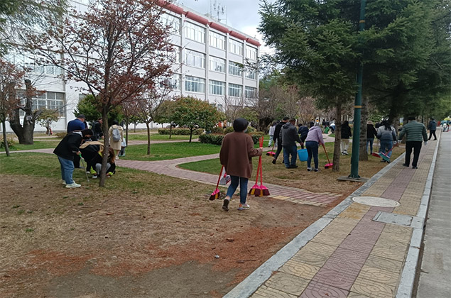 今年4月是第34个爱国卫生月。为全面落实大卫生、大健康理念,预防和减少疾病,保护师生健康,倡导文明卫生生活习惯,共同维护美好校园环境。我院于2022年4月4日下午组织教职工、学生党员、入党积极分子、学生干部爱国卫生大扫除活动,对我校第四教学楼周边、筹建广场周边、图书馆周边、学校北大门口道路进行了深度打扫。