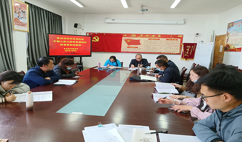 2022年4月28日食品科学学院召开“习近平总书记在中国人民大学考察调研重要讲话精神”主题学习研讨会,食品科学学院党委书记洛桑次旦主持会议,食品学院全体在校教职工参加学习。