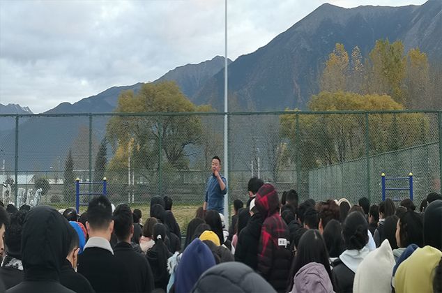 疫情当前,又值冬季呼吸道传染病高发季节。为认真落实区教育厅、林芝市疫情防控办公室和学校的通知要求,对我院疫情防控工作进行再部署、再动员、再落实,11月11日上午8时,我院利用早操时间组织学生在水泥篮球场召开疫情防控动员会,学院党委副书记索朗才旺主持。