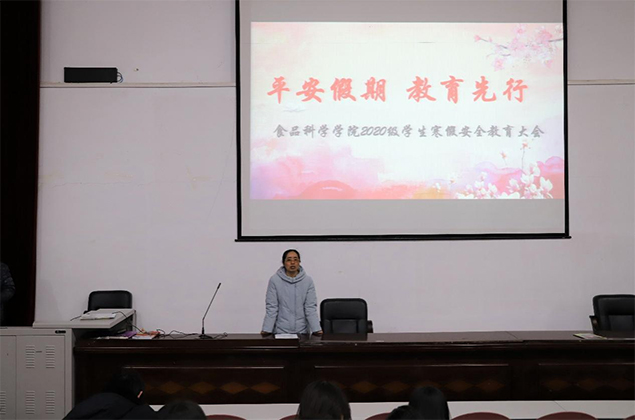 假期将至,为扎实推进假期安全工作的开展,提高学生安全意识,增强学生疫情防控意识,引导学生安全文明离校、平安归家,有效防范各类安全事故的发生。我院特于12月9日下午5:30在2107教室召开食品学院2020级学生寒假安全教育大会。此次会议由学生科辅导员马少飞老师主持,我院院长肖振红、各班主任及20级全体学生参加。