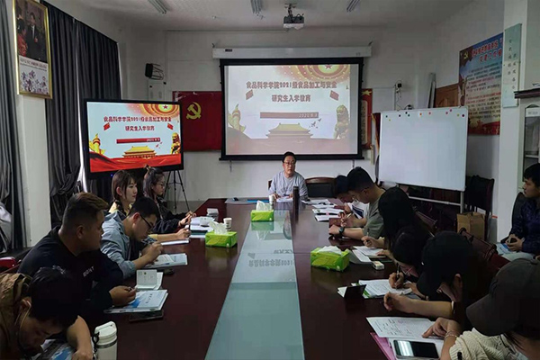 为进一步引导2021级研究生新生尽快熟悉学校学习生活环境,了解学校各项规定,规范日常管理,帮助他们更好地适应新学期生活,食品科学学院特于2021年9月3日下午3点半在学院会议室开展了2021级研究生入学教育活动。此次会议由我院学生科科长马少飞同志主持,食品学院院长肖振红同志、研究生秘书李梁同志及全体研究生新生参加了本次教育活动。