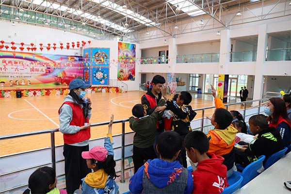 经与儿童福利院负责人协商,活动在儿童福利院活动室展开。活动伊始,文艺部用青春的活力、动感的舞步带动现场气氛,小朋友们逐渐活跃起来,其它节目也依次展开。之后,我们组织了有奖竞答环节,用数学题、脑筋急转弯的形式向小朋友们提问,服务队队长次仁扎巴以亲切、幽默的语言带动现场的小朋友们,小朋友们积极参与。在活动中有几名腼腆的孩子,我们人员与他们积极进行交流,避免让他们落单。最后,我们将准备的文具等物品交给孩子们的生活老师,并与孩子们合影留念。