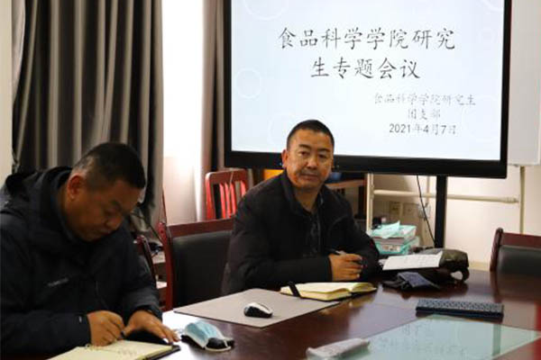 为落实立德树人的根本任务,深化我院研究生教育管理服务成效,提高研究生教育管理服务水平,实现新时代研究生教育改革发展目标,我院于4月7日10:00在食品会议室召开了研究生专题会议。本次会议采取线上和线下的方式进行,不在校的研究生通过腾讯视频APP线上参加,校学工处副处长洛桑云旦、我院党委副书记索朗才旺、学生科马少飞以及全体在校研究生参加了线下会议。