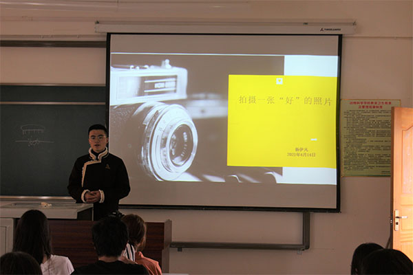为提高团学工作能力,帮助我院学生更好的了解摄影,培养并发展一项兴趣爱好以便更好的熟练应用身边的摄影工具,我院于4月14日特邀16级学长杨伊凡于第一教学楼206教室做关于摄影技巧的讲座,讲解了有关摄影的基础知识,本次会议由学生科辅导员巩雪梅主持,部分团学成员参会。