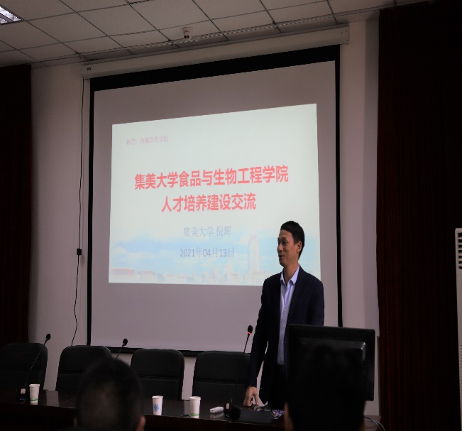 4月13日,集美大学食品与生物工程学院倪辉副院长、李健副院长、李利君教授、胡阳老师一行应邀到食品科学学院交流。