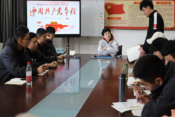 首先,巩老师要求学员一一发言谈谈自己的入党动机及目的,随后对发言中出现的问题提出相关建议,要求培训学员端正思想态度。接着,巩老师介绍了新党章的内容,要求全体入党积极分子要全面的学习党章,牢牢把握新党章的新理论、新观点、新内容,全面准确的领会我党各项活动的基本章程。随后,在学习新党章视频中,强调了党的性质和宗旨,党的理论和路线方针政策及党的重要主张。同时巩老师要求大家要积极了解党章发展历程,认真学习新思想,新理论,遵守党章,维护党章,有大局意识,责任意识,牢记使命,不忘初心。