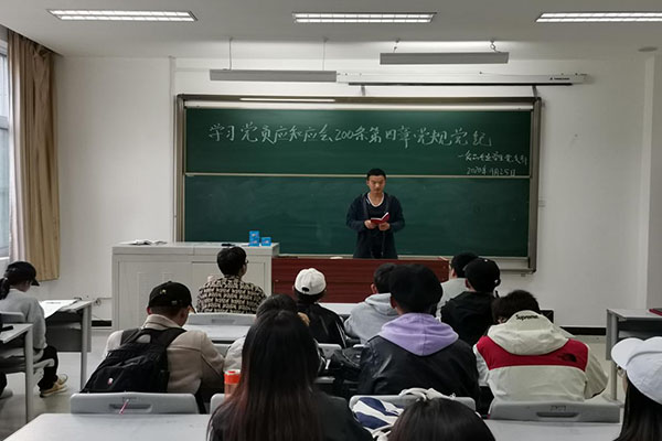 党风关系到党的生死存亡,党有党纪,国有国法,没有规矩不成方圆,作为一个共产党员必须带头遵守党纪国法,食品专业学生党支部于2020年9月25日下午18:30在第四教学楼107教室组织全体党员预备党员展开学习了党规党纪,本次会议由食品专业学生党支部书记马少飞同志主持。