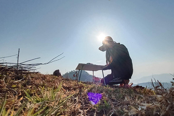 后来,在我们全家人的努力下,终于找到了一个4G网还算稳定的地方——小山村背靠着的山顶。3月9号那天早上,我和其他同学一样,一起迎来了我们的第一堂网课,我很激动,也很期待。