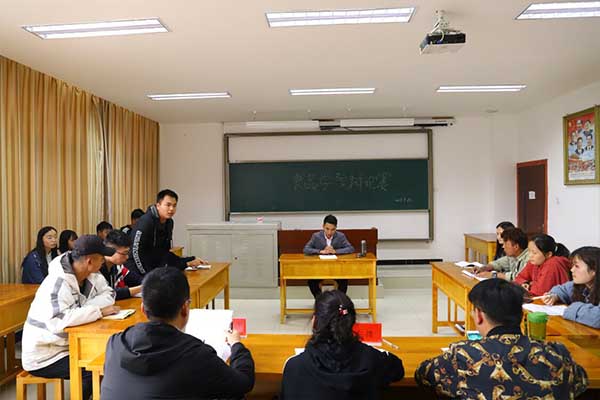 为深入学习习近平新时代中国特色社会主义思想,加强我院学风建设,提高学生语言组织表达能力和逻辑思维能力,我院于6月10日在4207教室开展了以学风建设为主题的辩论赛复赛。学生科科长马少飞、团总支书记次仁措及辅导员王鲁岩出席并担任了此次比赛的评委,此次比赛的主持人是18食质班的米瀚同学。