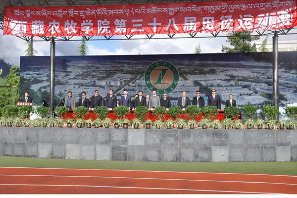 西藏农牧学院第三十八届田径运动会于2019年5月9日在体育场正式拉开帷幕。上午9点,全校师生参加了运动会开幕式。在激昂的乐声中,校旗方阵、鲜花方阵、各院方阵依次通过主席台,在各院迎风飘扬的院旗的引领下,运动员们着装整齐,精神抖擞,喊着嘹亮的口号,迈着整齐的步伐,展示了西藏农牧学院学子们积极向上的精神风貌。