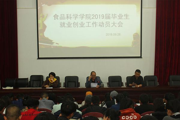为深入贯彻落实党的十九大精神,切实做好2019届毕业生就业创业工作,统一思想认识,食品学院高度重视,于9月28日下午3:30组织2019届全体毕业生,在2107教室召开2019届毕业生就业创业工作动员大会,传达我院2018年就业创业工作情况并部署2019届毕业生就业工作相关安排,院党委书记洛桑次旦、院党委副书记索朗才旺和就业工作辅导员巩雪梅参加本次会议,本次动员会由索朗才旺副书记主持。